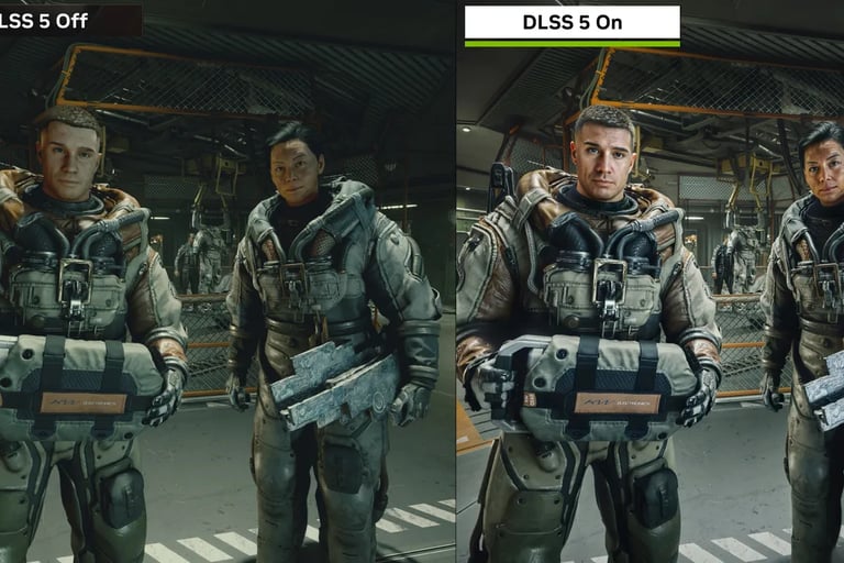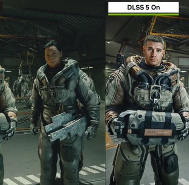 A comunidade ficou dividida em dois grupos, os que trabalham com produção de jogos e os que curtem jogar. O DLSS5 de maneira simples, é uma forma da IA da placa gráfica ler as informações de geração e renderização de vídeo e aplicar filtros, máscaras que melhor interpretem os dados ofertados pela produtora do jogo. Aqui que reside o primeiro grupo, eles ficaram extremamente preocupados em como a IA vai substituir os desenvolvedores de jogos. A Nvidia já respondeu que não haverá substituição, uma vez que todos o trabalho de criação deve ser feito para alimentar a IA que apenas melhora o que já foi feito, ela não cria nada do zero. Não é necessário dizer o que o segundo grupo achou. Imagens abaixo: